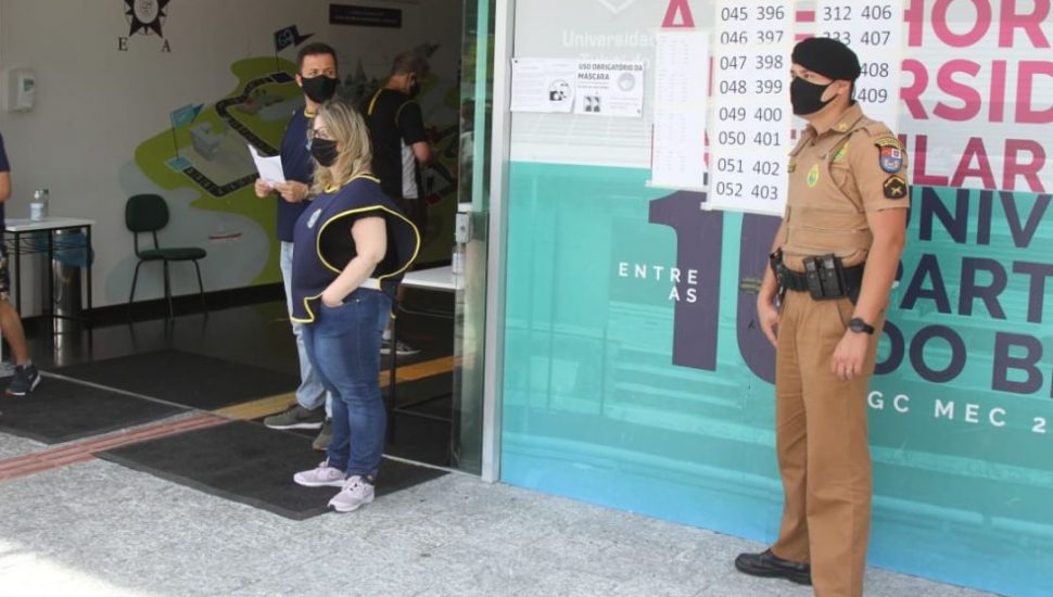 Na chegada à UTP, o movimento de veículos foi constante, mas sem congestionamentos e com facilidade de encontrar um local para estacionar o veículo dentro da própria universidade. Ao ingressar no principal bloco, vários orientadores ajudavam os eleitores que que tiveram a seção trocada pelo Tribunal Regional Eleitoral do Paraná (TRE-PR).
