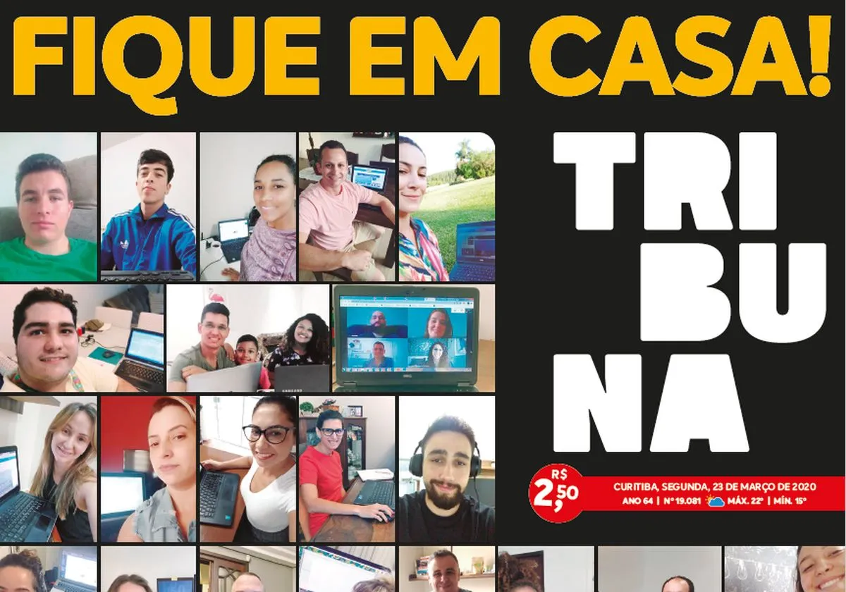 Cada um na sua casa, com a cabeça cheia de medos sobre a tal da pandemia, tento que se virar para continuar entregando a melhor edição impressa da Tribuna dia após dia. Um jeito novo de entregar o texto, de conversar, de criar. Redefinimos rotinas, passamos a conversar por um grupo de WhatsApp como se fosse uma redação, tivemos desafios para encontrar a melhor forma de escolher o texto, editá-lo, enviá-lo, diagrama-lo, revisá-lo e liberamos para a gráfica.