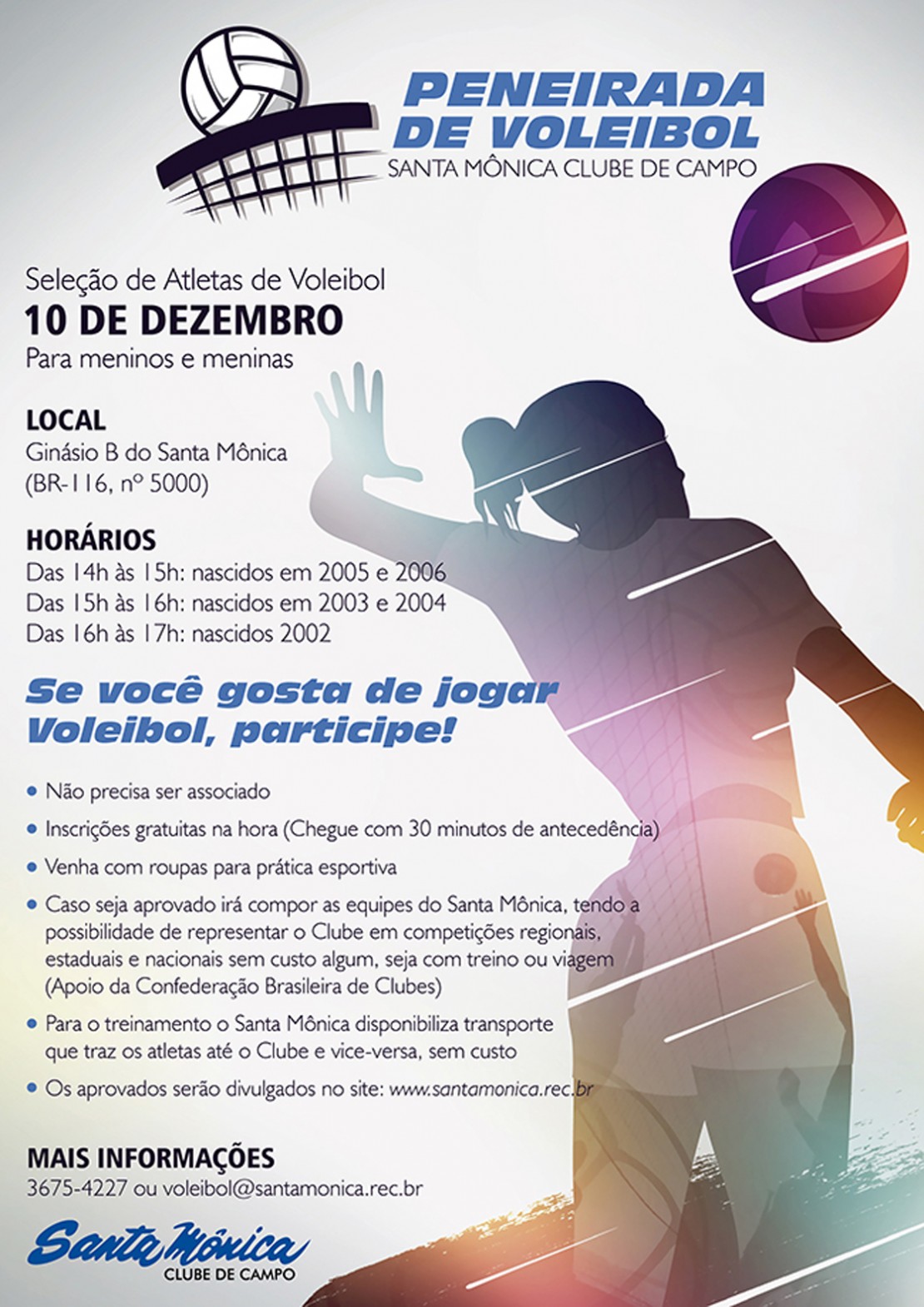 INFORMAÇÕES: 41-3675-4227 / voleibol@santamonica.rec.br