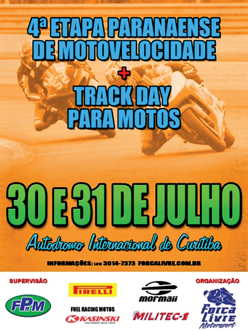 Track Day para motos A novidade nesta etapa é o Track Day, que acontece durante 25 minutos, no sábado. “No domingo, o Track Day será exclusivo para clientes da Fuel Racing -Kasinski”, diz Pereira.