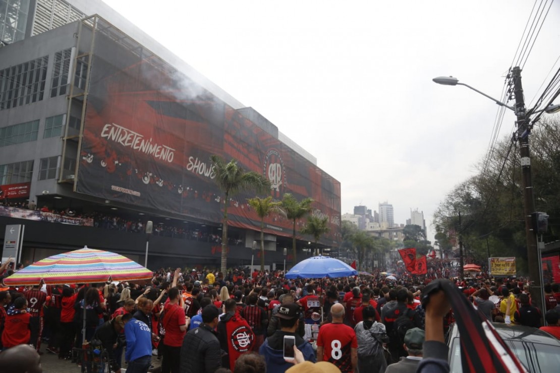 15h23 – Milhares de torcedores se aglomeram em frente à Arena da Baixada, esperando todo o elenco descer no estádio. Entre a chegada do voo da delegação em Curitiba até agora, já são quase quatro horas de festa. (Ricardo Brejinski)