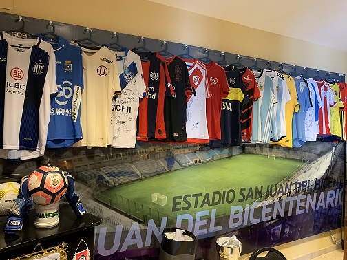 Os torcedores que vão ao estádio Bicentenário, em San Juan, na Argentina, nem imaginam que a sala do gerente de segurança é também um particular Museu do Futebol. “Aqui você vai encontrar as camisas de quase todos os times que já jogaram no estádio”, conta Rubén Cardozo.