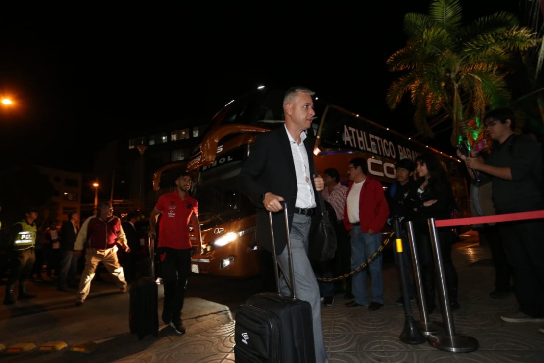 A Tribuna do Paraná acompanhou a chegada da delegação do Athletico no hotel que fica próximo ao Estádio Félix Capriles. Somente poucos torcedores que chegaram à Cochabamba um pouco antes, em um voo comercial e que também estão hospedados no hotel do Furacão, recepcionaram o time atleticano.