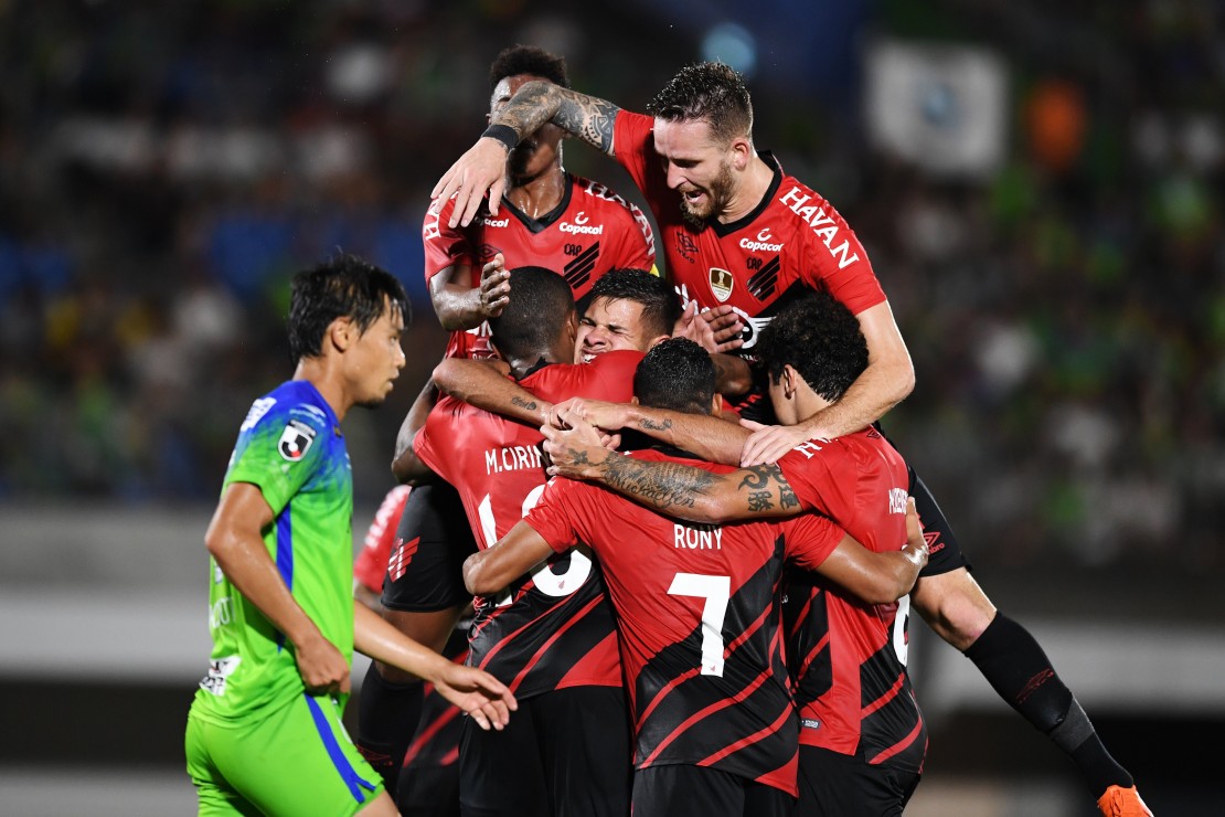 Depois de ficar concentrado muito no meio de campo, o jogo ficou mais aberto na reta final. Rony e Wellington deixaram o Athletico muito próximo de marcar. Aos 36 minutos, Tokac até chegou a marcar um belo gol, mas a arbitragem marcou impedimento no lance. O Furacão, então, respondeu de forma eficiente e abriu o placar aos 40 minutos. A defesa do time japonês falhou, Wellington cruzou e Marcelo Cirino, livre, cabeceou sem chances para o goleiro Matsubara e colocou o Rubro-Negro em vantagem.