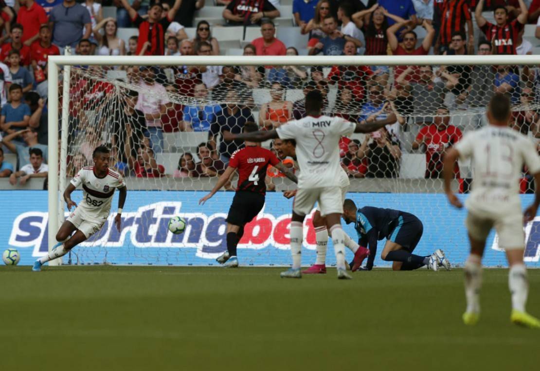 O Rubro-Negro abusou da sorte e tomou o gol aos 44. O goleiro Léo e Wellington, na tentativa de sair jogando, erraram feio e, aproveitando da lambança do sistema defensivo atleticano, Bruno Henrique roubou, mandou para o gol e abriu o placar na Arena da Baixada.