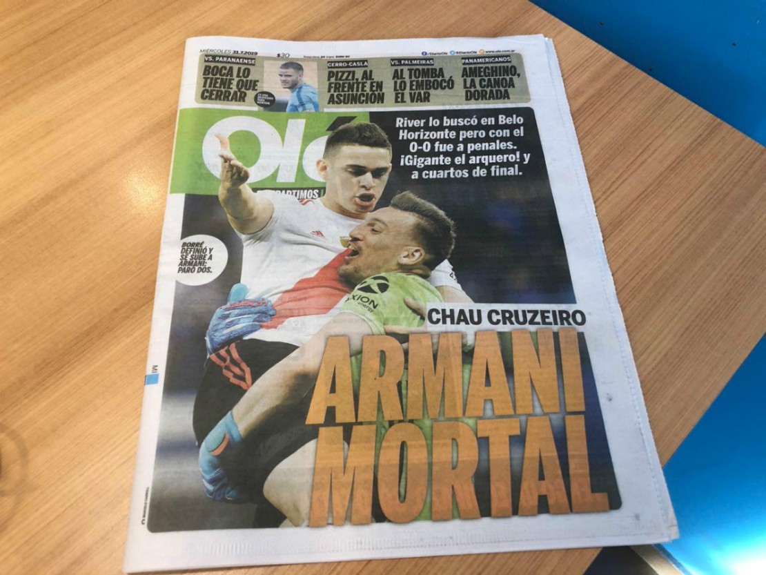 Principal veículo de esportes do país vizinho, o Diário Olé reservou sete páginas para a partida que aconteceu em Belo Horizonte, enquanto a decisão do Furacão ficou com apenas quatro páginas. O título principal é “Força, Boca – se empatar, passa”. Na chamada, ainda fala que o clube divide as atenções da partida com a chegada do italiano De Rossi, que estará no estádio à noite.