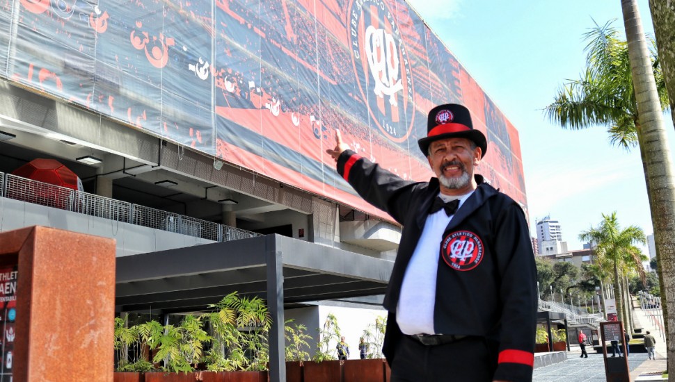 É sempre com muita alegria e criatividade que o torcedor Flameron Soares Lopes, 55 anos, se caracteriza como um personagem especial de seu time do coração para ir aos jogos do Athletico. Com direito a fraque e acessórios, o atleticano se transforma em Cartola antes de seguir rumo à Arena da Baixada em dia de partidas. O objetivo do apaixonado pelo Furacão é que o antigo mascote, que por muitas décadas já representou clube no passado, possa levar sorrisos e a paz ao estádio.