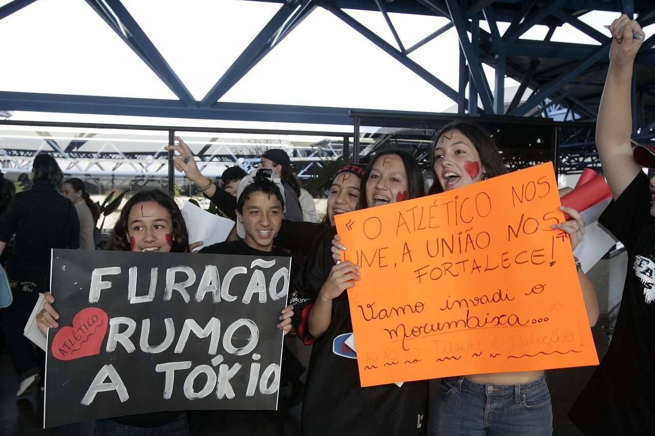 Não faltou apoio no embarque do Athletico para São Paulo, na véspera da grande final da Libertadores. Muitos torcedores compareceram ao aeroporto para apoiar e tietar elenco. A confiança de que o clube estaria no Mundial, no Japão, em dezembro, era grande, como o indicava o cartaz da fã-mirim.
