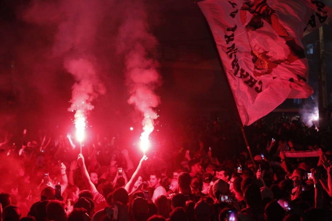 A torcida do Athletico se posiciona na rua Brasílio Itiberê para a chegada do ônibus com jogadores e comissão técnica. Vem aí mais uma “rua de fogo”.