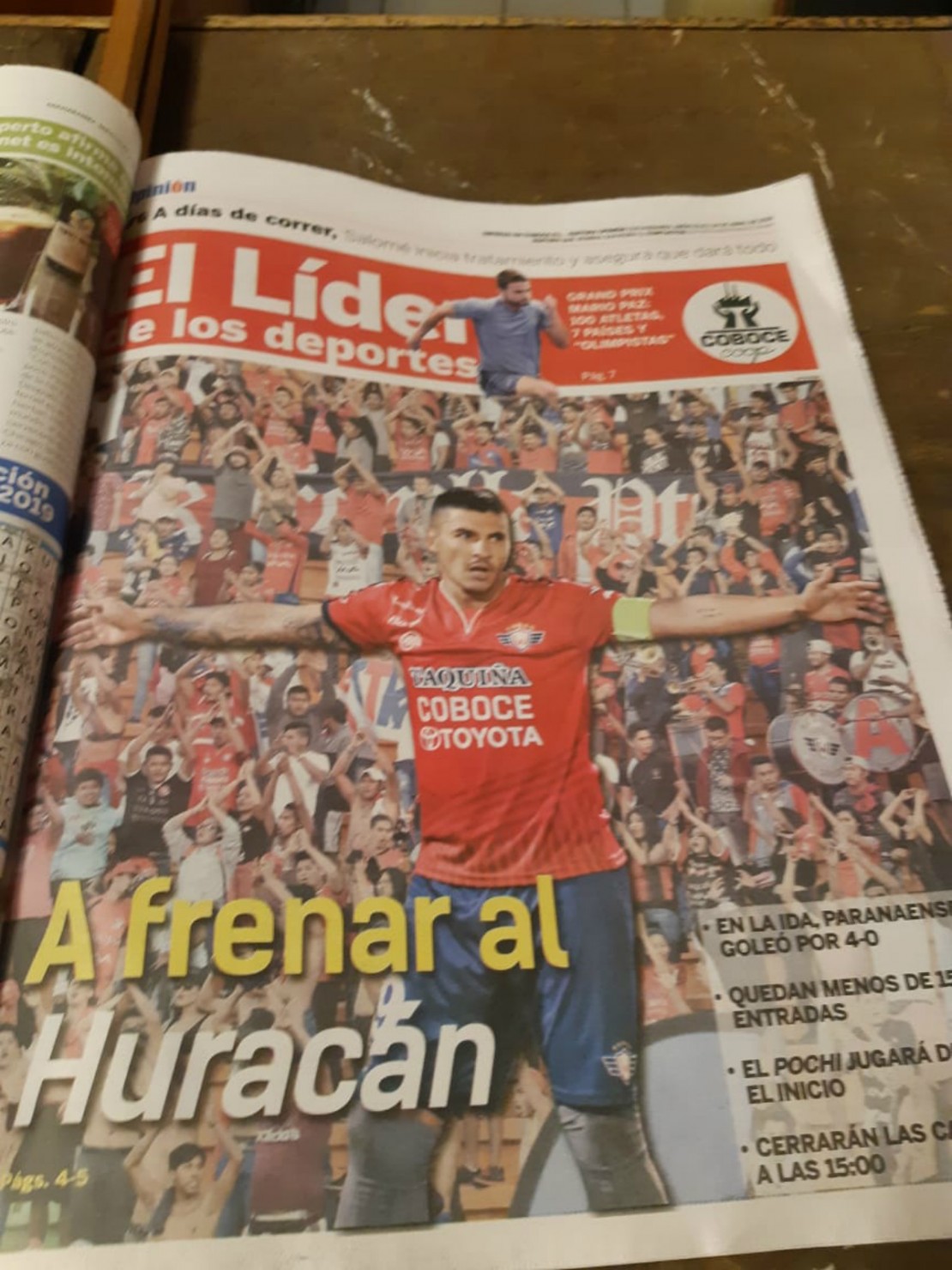 Já o jornal Opinión, destaca na capa apenas a entrada do meia Pochi Chávez no duelo contra o Furacão. Na capa de esportes, o periódico traz como manchete o que o Jorge Wilstermann precisa fazer para conseguir a vitória e seguir com chances de classificação: “Para parar o Furacão”, diz a manchete.