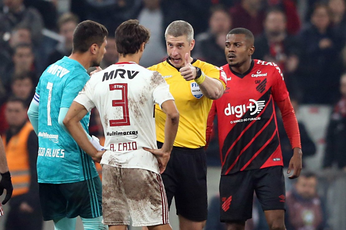O duelo como um todo foi bastante trucando por conta do VAR, que anulou – de forma correta – três gols do Athletico, mas não foi acionado quando o goleiro Diego Alves, do Flamengo, pegou a bola com a mão fora da área, ainda no primeiro tempo, e deveria ser expulso.