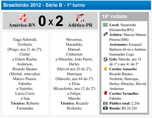 Depois de uma semana conturbada com a demissão do técnico Jorginho, o Atlético voltou a se encontrar com a vitória na Série B. Nesta terça-feira, em Goianinha, interior do Rio Grande do Norte, o Furacão fez 2 a 0 no América-RN, com um show do atacante Marcão.