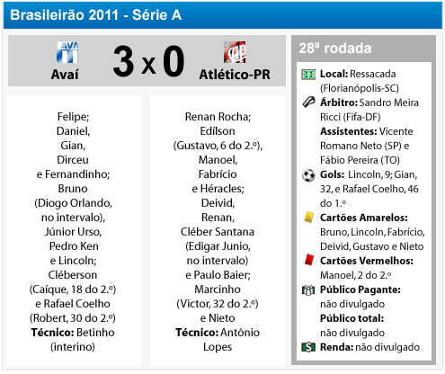 A coisa, que já estava feia, ficou ainda pior. Aos 32 minutos, Gian subiu no meio da zaga atleticana e cabeceou para o gol. Por fim, aos 45 minutos, Cléberson foi derrubado na área por Deivid e o juiz marcou pênalti. Rafael Coelho cobrou rasteiro, no cantinho, e fechou o placar.