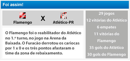 Depois de dois anos lutando prara não cair, nesta temporada o Furacão segue na briga pelo G4. Para manter-se vivo nesta luta, não pode pensar sequer em empate contra o rubro-negro carioca. O momento exige superação, inclusive por causa dos desfalques de Rhodolfo, Branquinho, Élder Granja e Maikon Leite.
