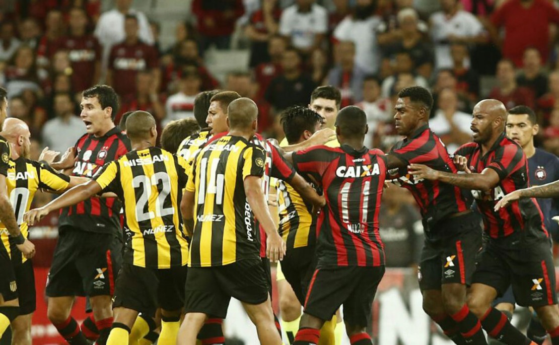 Desde o começo do jogo, o Atlético já sentiu um pouco do espírito da Libertadores. O Peñarol abusou das faltas, catimbou, provocou e o a etapa inicial teve nada menos do que sete cartões amarelos. O Furacão, com a mesma estrutura tática do ano passado, mas com algumas peças diferentes, apresentou ao seu torcedor apenas três dos cinco reforços contratados. Iniciaram a partida o lateral-direito Jonathan, o meia Felipe Gedoz e o atacante Luis Henrique.