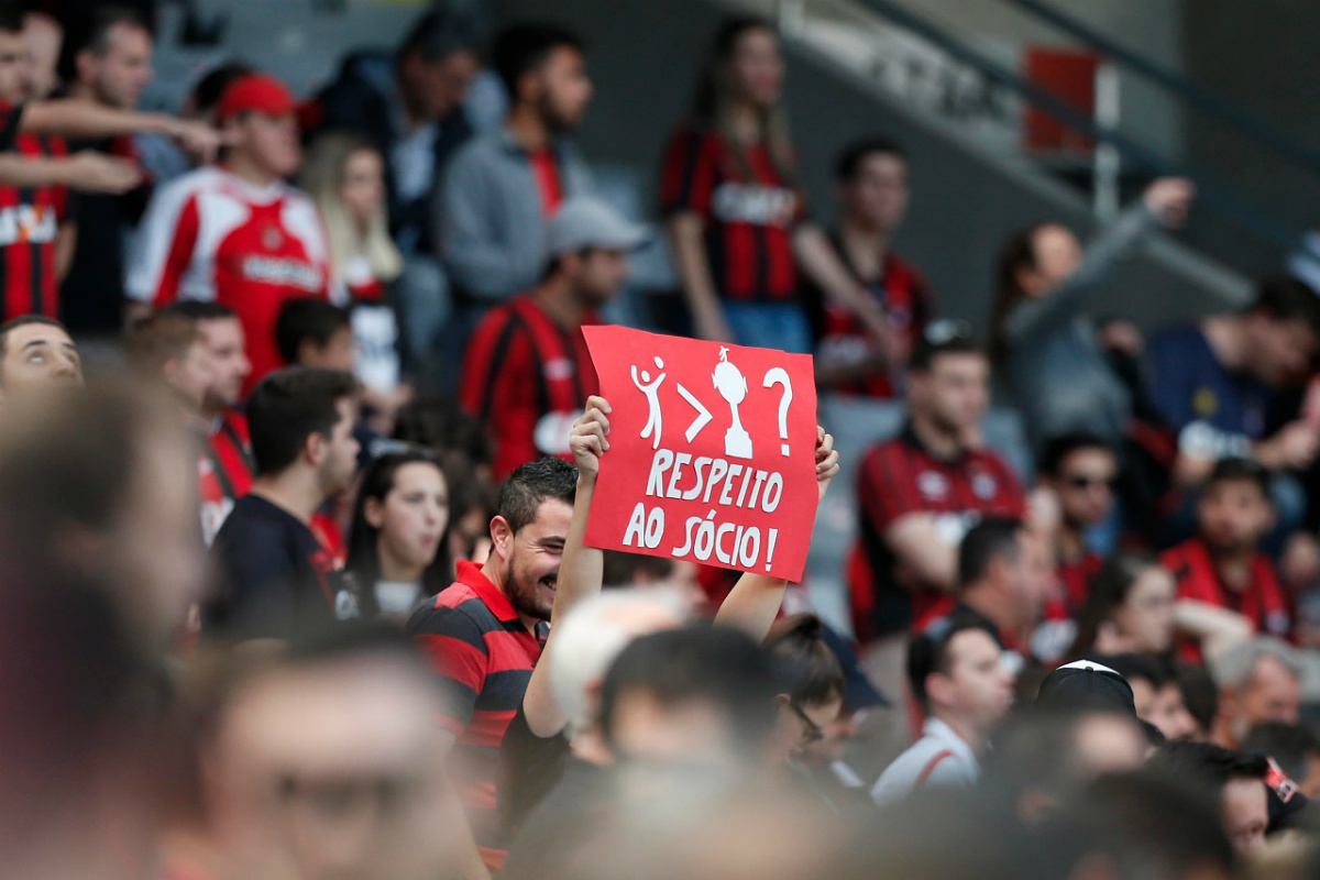Com faixas escritas “respeite o sócio”, “Vôlei é maior que a Libertadores?” e menos evento e mais futebol”, os atleticanos reclamaram muito, ainda mais antes de o Furacão construir a goleada. No final do jogo, os protestos continuaram com os gritos de “Não é mole, não. Libertadores tem que ser no Caldeirão”.