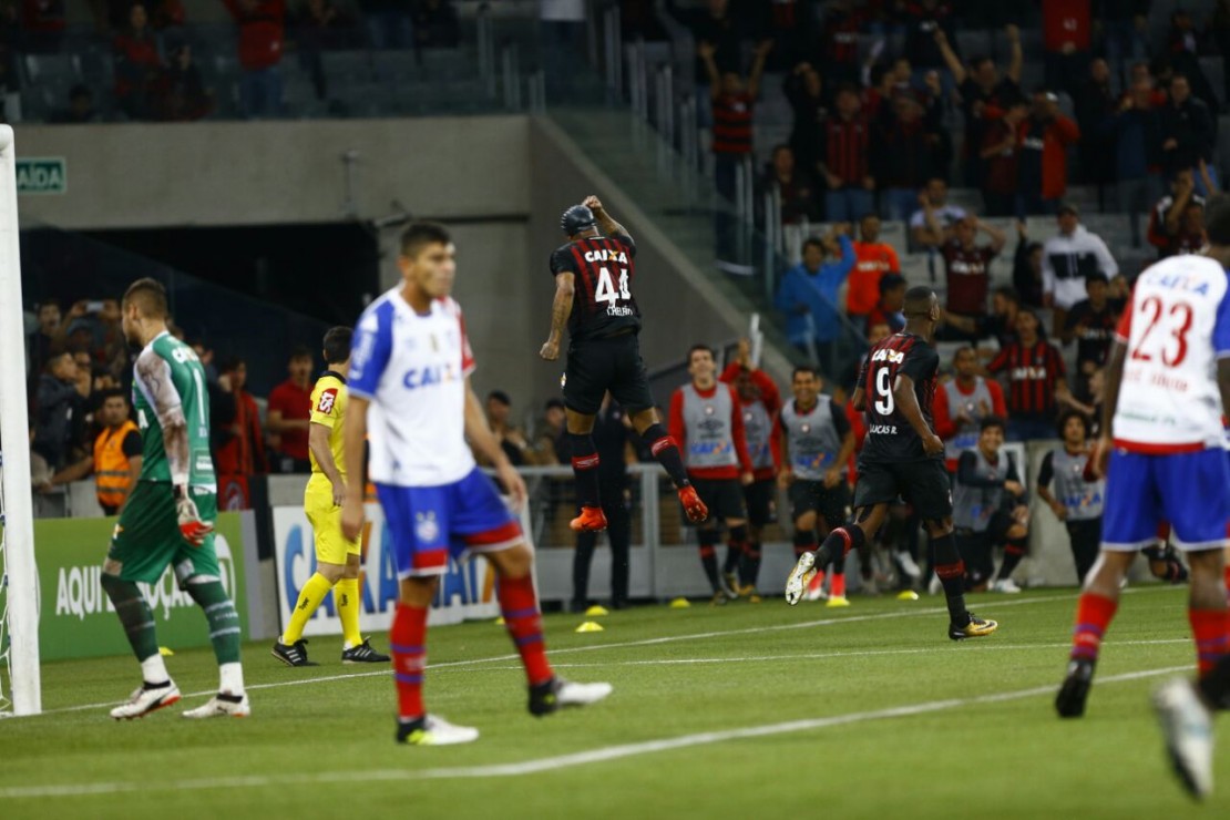 Para piorar a situação do Atlético, antes dos 20 minutos, Jonathan saiu machucado e deu lugar a Cascardo. Foi por ali que o Bahia construiu seu gol aos 20 minutos, quando Mendoza abriu o placar depois do cruzamento de Eduardo. A resposta do Furacão foi rápida e, minutos depois, Matheus Reis colocou a mão na bola dentro da área. Nikão cobrou o pênalti com perfeição e igualou a partida.