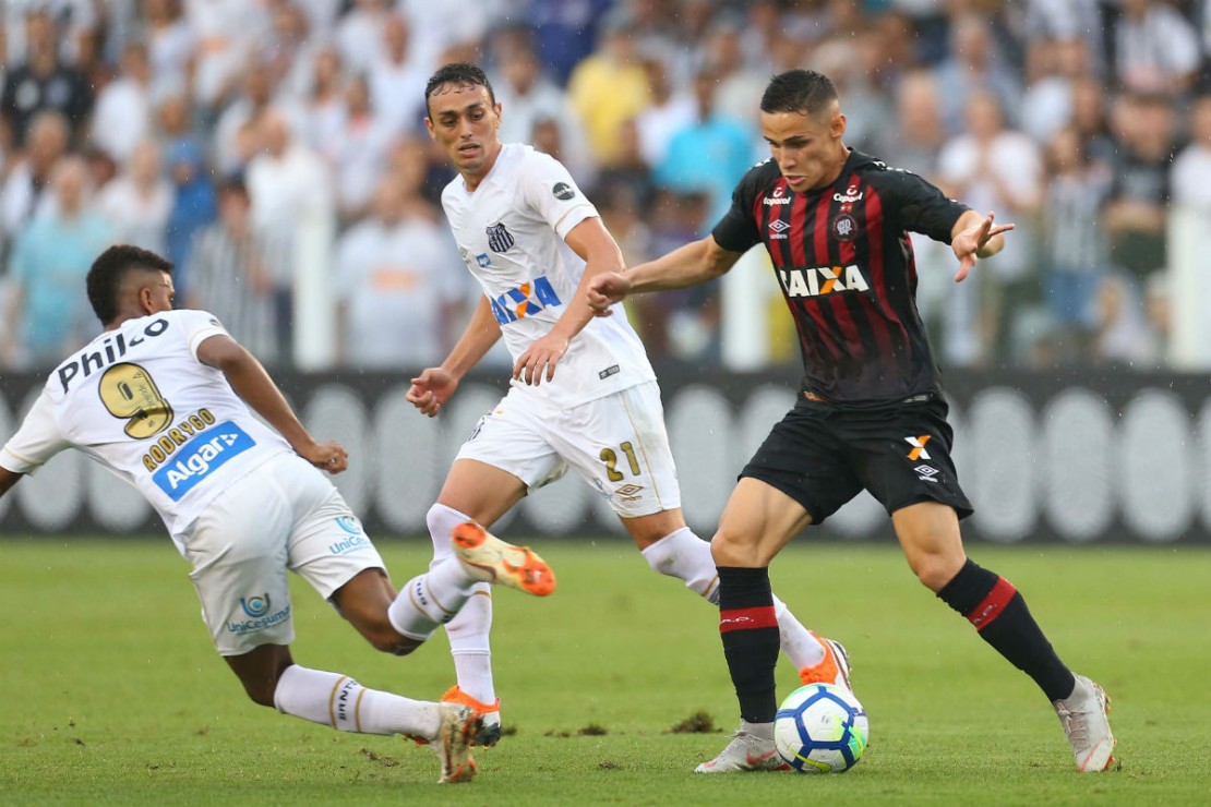 No primeiro tempo diante do Santos, o Atlético chegou a criar oportunidades, mas foram os donos da casa que tiveram as melhores chances. O goleiro Santos fez defesas firmes, contribuindo para que o placar não fosse aberto nos 45 minutos iniciais do jogo.