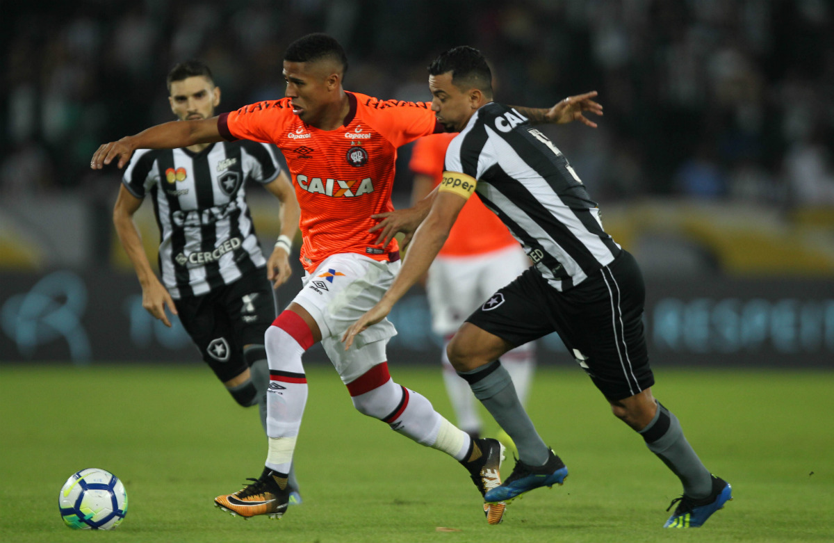 O Atlético amargou mais uma derrota no Campeonato Brasileiro, a quarta seguida. Com gol de Rodrigo Lindoso, aos 33 do primeiro tempo, e de Renan Lodi (contra), aos 26 da segunda etapa, o Botafogo bateu o Furacão por 2×0 na noite desta quarta-feira (13), no estádio Nilton Santos, no Rio de Janeiro. Com isso, o time continua com apenas nove pontos na tabela e vai ficar na zona de rebaixamento durante a parada para a Copa do Mundo.