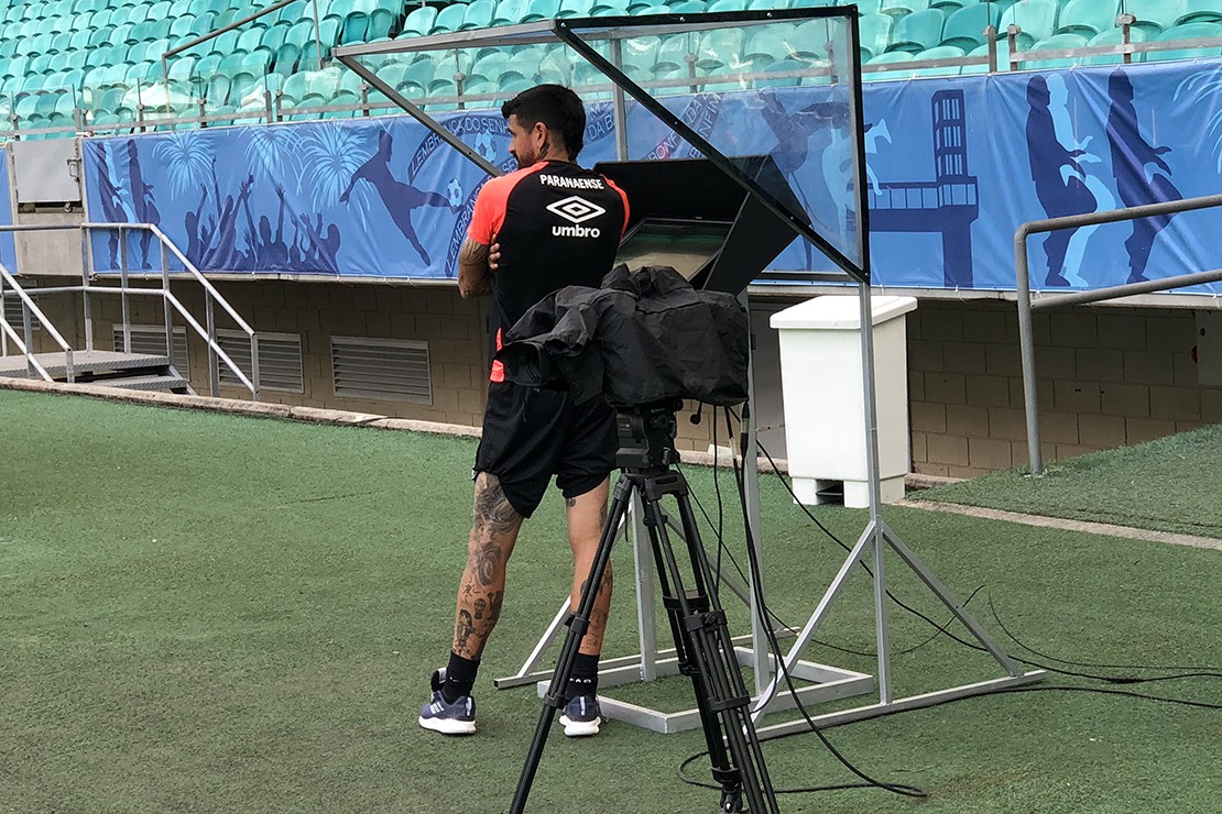 Salvador – Ao entrar no gramado da Fonte Nova, ele está ali, parado. Só por estar ali já gera curiosidade. Ninguém passa sem dar uma paradinha pra conferir. Alguns, como Thiago Heleno, fazem todo o gestual, levando os companheiros às gargalhadas. É o monitor de vídeo do VAR, que é uma novidade para Atlético e Bahia, que se enfrentam nesta quarta-feira (24) às 21h45 pela ida das quartas de final da Copa Sul-Americana.