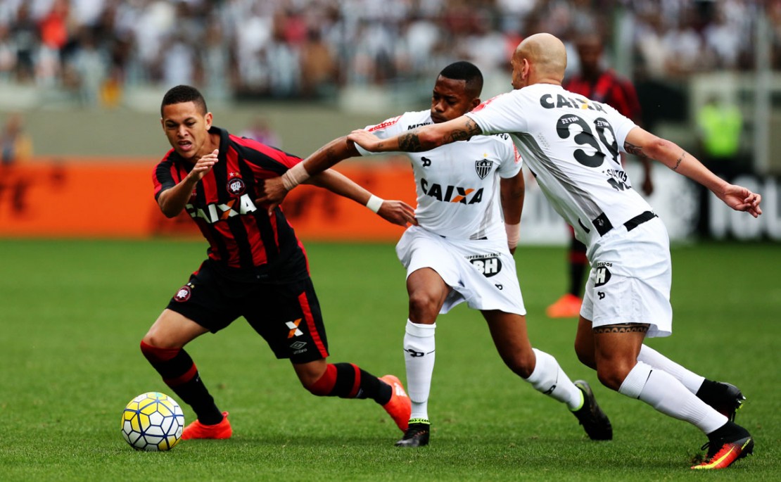 Até onde foi possível manter a igualdade tática, o Atlético foi bem. Prendia o meio-campo do Galo, impedia que a bola passasse por Robinho e Maicosuel e deixava Lucas Pratto isolado. E ainda saía com perigo nos contra-ataques, que não eram aproveitados. Mas era um jogo sob controle, com a organização evitando que o time com mais jogadores decisivos chegasse perto do gol de Santos.