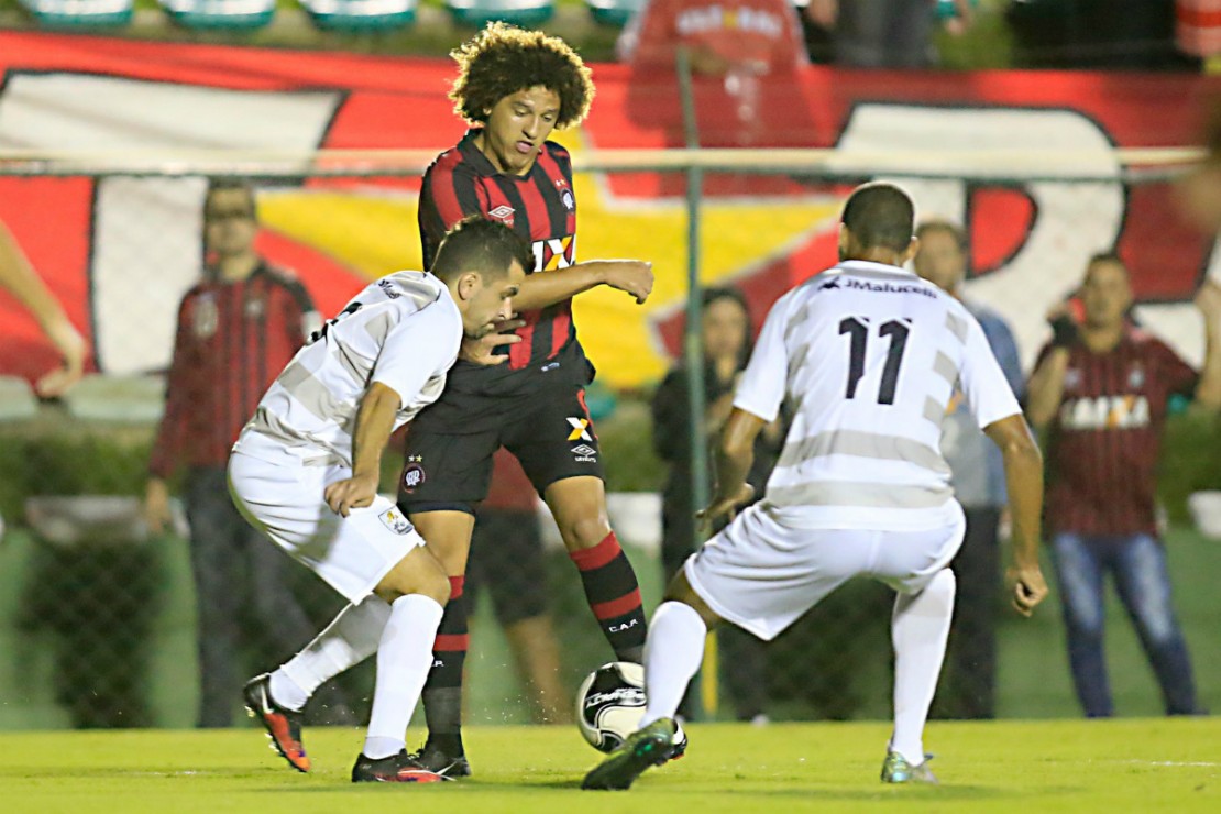 O gol dava mostras que o Atlético entraria, enfim, na partida. Mas não foi o que aconteceu. O Jotinha, com uma marcação eficiente, não dava espaços para o Furacão atacar. Assim, com o domínio do meio de campo, os donos da casa passaram a assustar a meta de Santos. Aos 22, Cristovam fez a jogada e Jenison por pouco não recolocou o Caçula em vantagem.