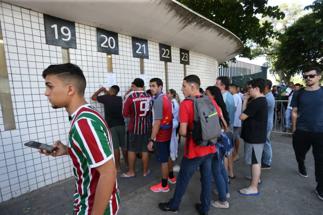 Por volta das 17h da tarde desta terça-feira, havia uma fila com cerca de 200 pessoas para retirar ou adquirir ingressos na torcida mandante.
