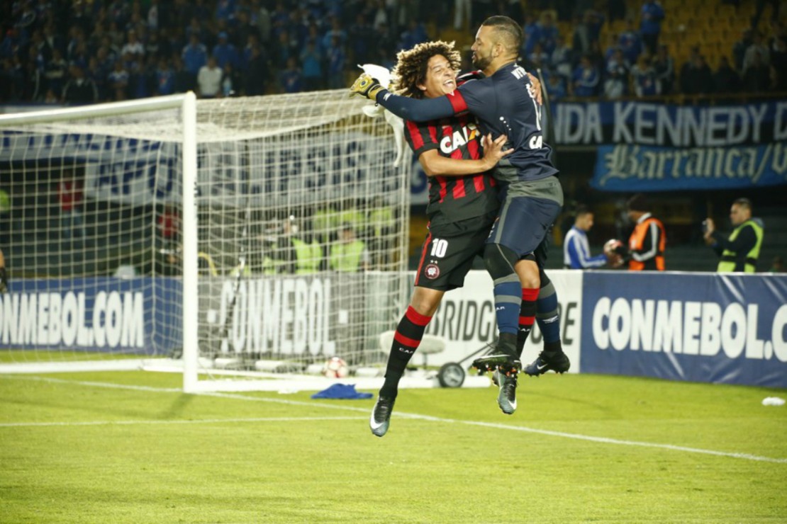 Sem fôlego, coube ao Atlético tentar levar a decisão para os pênaltis. Aí que o tempo parou – ou pareceu parar. Foram minutos intermináveis, inúmeras bolas na área, chutes de todos os lados, Weverton pulando pra lá e pra cá. Deu certo. Decisão nas penalidades. E o Furacão tinha seu camisa 12, que logo na segunda cobrança defendeu o chute de Franco. Depois, viu Máxi Nuñez acertar o travessão. E foi o primeiro a comemorar com Felipe Gedoz o gol da classificação.