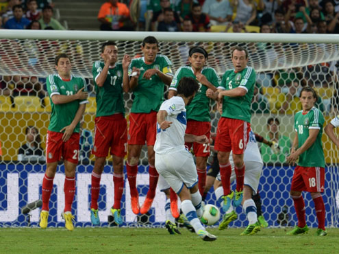 O JOGO – A Itália começou dominando a partida e logo aos quatro minutos Balotelli mostrou seu estilo ousado ao tentar encobrir Corona com um chute quase do meio de campo. O atacante era a principal arma da seleção europeia e parou no goleiro mexicano aos 6, depois que recebeu passe de Montolivo em boa jogada pela esquerda. Na sequência, foi a vez de Giaccherini invadir a área e bater com perigo.