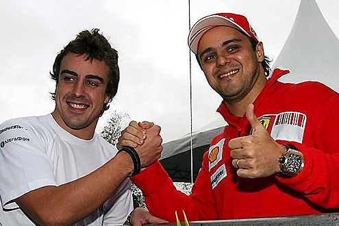 Na segunda sessão dos treinos livres para o Grande Prêmio do Brasil, o espanhol Fernando Alonso, da Renault e futuro companheiro de Massa, na Ferrari, marcou o melhor tempo e foi o primeiro colocado.