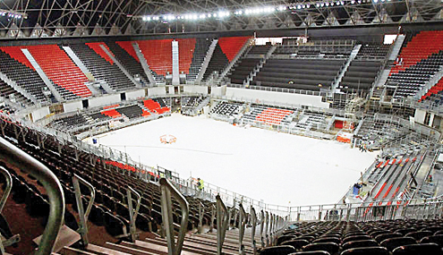 Com 35 metros de altura e 115 de largura, o Basketball Arena tem 12 mil lugares. Em seu interior predomínio das cores preto e laranja, as mesmas da bola de basquete.