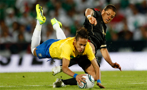 Com a vantagem numérica e também no placar, o México decidiu ignorar que tinha um jogador a mais e se fechar na defesa, atacando só no contra-ataque. Sentindo falta de um armador (Ronaldinho fazia sozinho a função), o Brasil pouco criou para Neymar e Hulk tentarem balançar a rede.