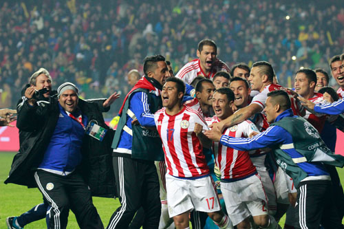 Nas cobranças, Év,erton Ribeiro e Douglas Costa perderam e os paraguaios venceram por 4 a 3. Fernandinho, Miranda e Philippe Coutinho fizeram. Pelo Paraguai, Martínez, Cáceres, Bobadilla e Gonzalez marcaram. Roque Santa Cruz perdeu.