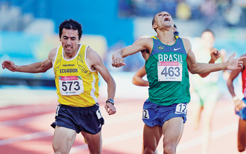 Ele precisou de muita garra para vencer a final de ontem. Veio de trás e assumiu o terceiro lugar no final da primeira volta, de 400 metros. “Encaixotado” por outros corredores, caiu para oitavo, posição em que estava na altura dos 800 metros. Depois, se recuperou e passou a liderar nos últimos 100 metros. Mas Byron Efren Piedra conseguiu uma arrancada incrível e os dois cruzaram juntos a linha de chegada. Diante disso, a organização do Pan demorou algum tempo para confirmar a vitória do brasileiro, que terminou a disputa com o tempo de 3min53s44, contra 3min53s45 do equatoriano.