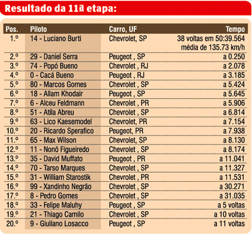De quebra, levou o irmão ao pódio para receber o bronze. O primeiro lugar na etapa, pela primeira vez, foi do ex-piloto de Fórmula-1, Luciano Burti. Na segunda colocação chegou o paulista Daniel Serrra, companheiro de equipe de Cacá.
