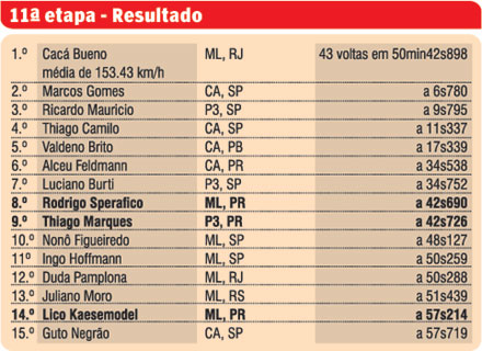 Cacá, bicampeão da categoria, fez uma prova arrojada desde o início e, após a parada nos boxes, quando optou em trocar os pneus, conseguiu ultrapassar o então líder Ricardo Maurício e guiou para a vitória.