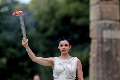 A chama que arderá durante a Olimpíada de Londres foi acesa nesta quinta-feira no berço dos Jogos, em Olímpia, na Grécia, em evento que marca o início do revezamento da tocha, que culminará com a realização da cerimônia de abertura no dia 27 de julho. A atriz Ino Menegaki, vestida como uma sacerdotisa, foi a responsável por acender a pira olímpica no Templo de Hera. Depois de uma invocação a Apolo, o antigo Deus Sol grego, ela usou um espelho côncavo para concentrar os raios do sol e acender a tocha.
