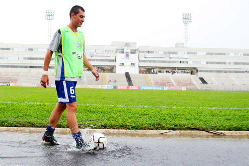 “Claro que pode jogar. Pode chover mais dois dias que dá pra ter jogo aqui”, atirou o auxiliar técnico do Tricolor, Ageu Gonçalves. Ele tinha certa razão – meia hora depois do horário previsto para o jogo, a chuva diminuiu e as condições do gramado do Durival Britto melhoraram muito.