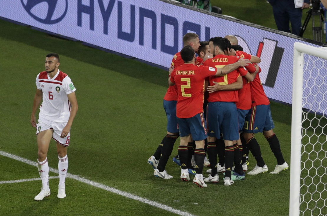 Como nas duas primeiras partidas, a Espanha viveu de lampejos de seus principais jogadores nesta segunda-feira. Desta vez, foram Isco e Iniesta que se apresentaram para tentar mudar o destino de uma Espanha sem inspiração. Curiosamente, o craque do Barcelona também foi vilão ao entregar a bola para o primeiro gol marroquino. O empate, porém, só foi selado em lance confuso no gol do reserva Iago Aspas, inicialmente anulado e só validado após consulta ao VAR.