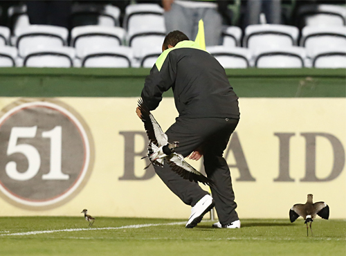 Um fato inusitado chamou a atenção na partida entre Coritiba e Botafogo, na última quarta-feira, no Couto Pereira. O jogo acabou começando atrasado por conta de filhotes de quero-queros que habitavam a área do clube carioca.