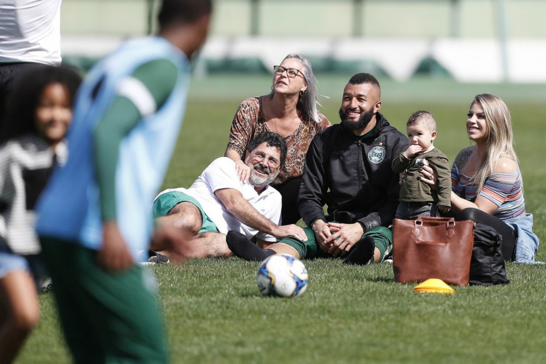 O último treinamento do Coritiba antes do duelo deste sábado (10), diante do Figueirense, às 16h30, no Couto Pereira, pela Série B do Campeonato Brasileiro, foi especial para os jogadores. Depois do treinamento, que teve duração de aproximadamente uma hora, na manhã desta sexta-feira (9), o elenco acompanhou um vídeo, no telão do estádio, em homenagem ao dia dos pais e que contou também com a presença dos filhos ao final da apresentação.