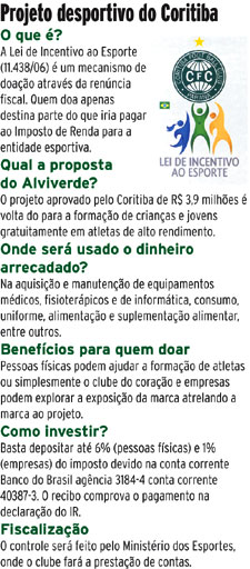 Eles podem destinar parte do imposto de renda devido ao Coxa através da Lei de Incentivo ao Esporte (ver quadro). Para tanto, especialistas mostrarão aos convidados o potencial que a marca Coritiba tem e ainda pode crescer com essa ajuda.