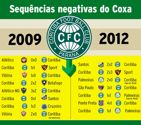 Trata-se de uma sequência que não acontecia desde 2009. Na ocasião, o Coritiba amargou um jejum de oito jogos sem vencer, com três empates e cinco derrotas (quatro consecutivas) entre Campeonato Brasileiro e Copa Sul-Americana. Desde então, a pior série havia sido de quatro confrontos, justamente este ano entre as finais do Paranaense, Copa do Brasil e Brasileirão – dois empates contra o Atlético, empate com o Vitória e derrota para o Internacional.