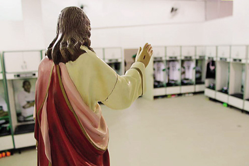 Diga-se de passagem, a medida é bastante apropriada ao Alviverde, que além de comemorar sua fundação no dia de Nossa Senhora Aparecida, padroeira do Brasil, tem o Santuário de Nossa Senhora do Perpétuo Socorro como vizinho no Alto da Glória. A fé pelo retorno do bom futebol apresentado no início do Brasileiro acompanha o grupo ao longo dos jogos e treinamentos. O vestiário principal do Couto Pereira é abençoado por uma imagem de Jesus Cristo, e rodas de reza, ainda na preleção, são comuns antes das partidas. Bem em frente ao campo 1 do CT da Graciosa, o mais utilizado pelo elenco nas atividades, também se faz presente uma estátua religiosa – desta vez, da Virgem Maria.