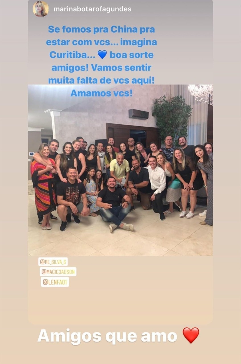 Em tom de despedida, uma amiga do jogador fez um post contando o destino do atleta. “Se fomos pra China pra estar com vocês… Imagina Curitiba”, escreveu.