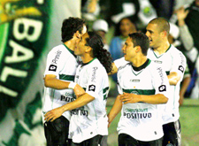 O Coritiba deu mostras ontem que está mais vivo do que nunca na árdua busca por um lugar entre os quatro primeiros colocados do Brasileirão. E a prova veio ontem à noite no Couto Pereira, com direito a dois gols de Keirrison. Mesmo debaixo de muita chuva, o Alviverde não tomou conhecimento do perigoso Internacional, o artilheiro brilhou e o time devolveu a derrota sofrida no primeiro turno no Beira-Rio. E melhor do que isso. Com os 4 a 2 sobre o Colorado, o Coxa subiu para a sexta colocação e embala de vez na reta final da competição. O próximo compromisso da equipe será a Portuguesa, sábado que vem, no Canindé.