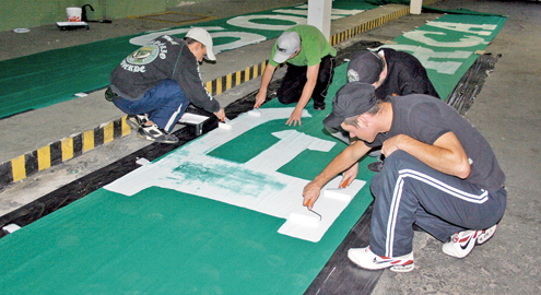 Um grupo de torcedores está usando a estrutura do Couto Pereira para confeccionar a nova faixa “Coritiba eternamente” (foto) para ser exibida no Atletiba de amanhã.