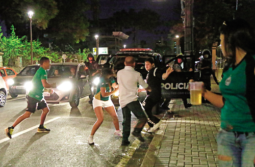 Torcidas organizadas de Coritiba e Corinthians protagonizaram cenas de selvageria antes da partida de ontem, no Couto Pereira. Segundo a Polícia Militar (PM), membros da Gaviões da Fiel e da Império Alviverde entraram em confronto na Rua Itupava, próximo à Rua Ubaldino do Amaral, com pedras e paus.