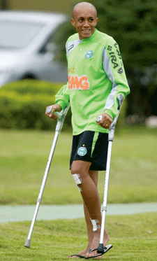 Já dá para pisar o chão sem muitos exageros, também dá para dirigir automóvel automático porque o pé esquerdo fica sem função, mas o que mais alegra o lateral Triguinho é a solidariedade dos companheiros e da torcida.