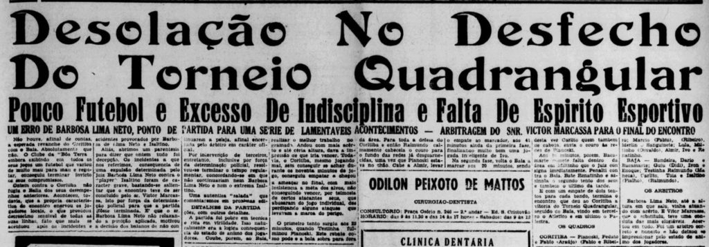 Jogos ruins, muita violência e arbitragem fraca. Você já deve ter passado por isso. Em 6 de abril de 1953 também havia descontentamento, tanto que foi manchete do Diário da Tarde. E era em um torneio amistoso.